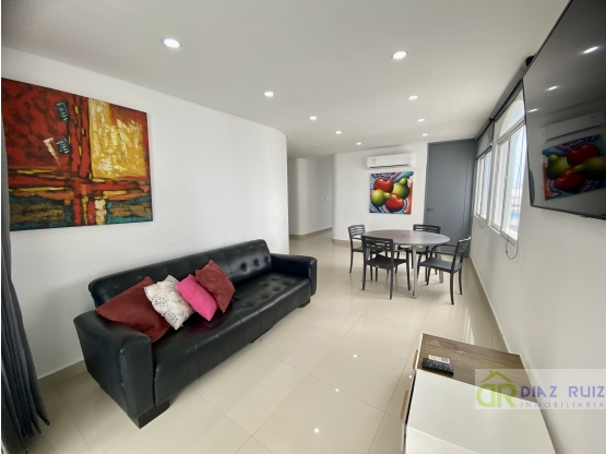 Apartamento en Venta ubicado en el barrio el Laguito, de uso turistico y residencial, cerca de playas, casinos, restaurantes, supermercados a solo 10 minutos del centro histórico y a 5 minutos de  Bocagrande, en donde puede encontrar entidades bancarias, todo para pasar un buen periodo de descanso. Tiene balcon vista al mar, sala, comedor, cocina, area de labores, 2 habitaciones, 2 baños y 1 parqueadero. El edificio tiene zona social, piscina, planta electrica y recepcion.
